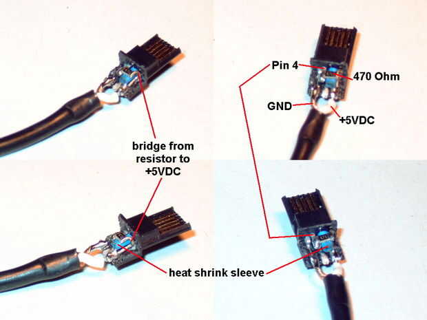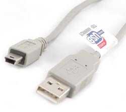 -un conector Mini-USB con 5 soldadura de pernos dentro de un estándar USB-A Mini-USB cable (ver cuadro 2)