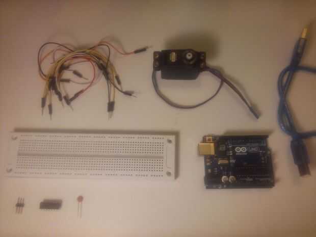 Que soldar los cables al motor y potenciómetro, así usted puede ponerlos en breadbord.
