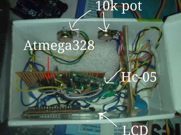 usé una caja móvil para montar todos los componentes y algunos cartulina para crear cámaras para almacenaje de la batería, LCD, circuitos etc. y una capa de espuma separar a todos ellos a fin de evitar cualquier cortocircuito.