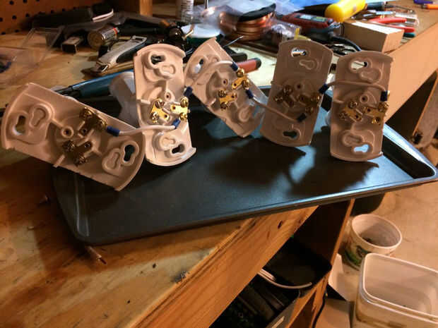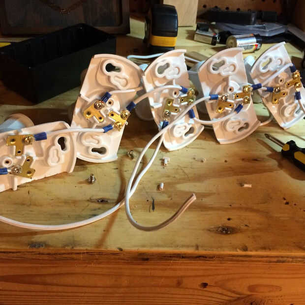 Estoy cableado modo independiente puedo apagar de los bulbos. Miré en la instalación de un dimmer, pero el costo fue salir de presupuesto. Si necesito menos luz, entonces puedo apagar bombillas individuales. El alambre es reutilizar un viejo cable.