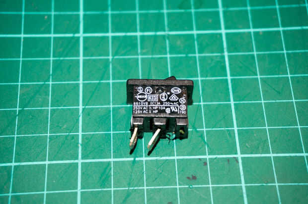 La batería se estará poniendo unos 8 amperios para aumentar el voltaje hasta 32v y 3 amperios para el LED así que necesitaba un fuerte interruptor para poder encender y apagar el dispositivo. Encontré un interruptor para 240v 10 amperios en mi colección de elementos de salvamento usé esto.