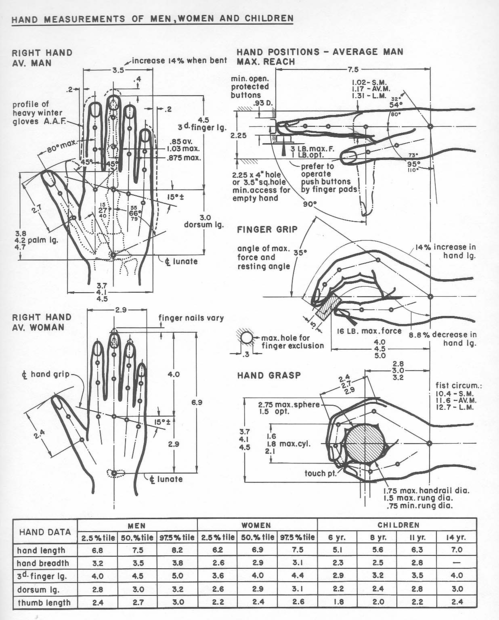 Ergonomía en diseño de producto es una cantidad enorme y así por el bien de interés académico que quería tomar en serio el diseño de la manija y hacerlo correctamente. Comencé a usar cartas de control estándar y mano dimensión Antropometría para obtener las mediciones necesarias de mi propia mano para construir una comprensión de la forma y el tamaño de la manija.
