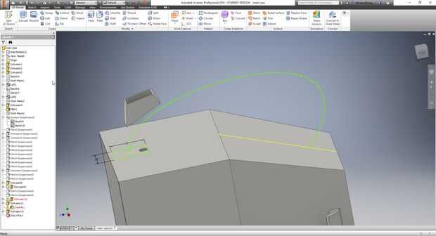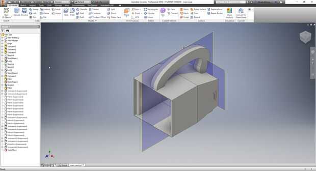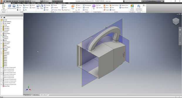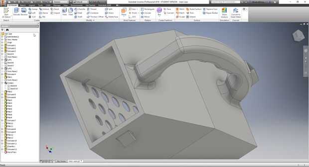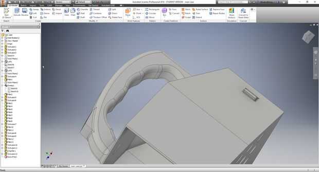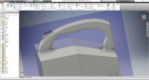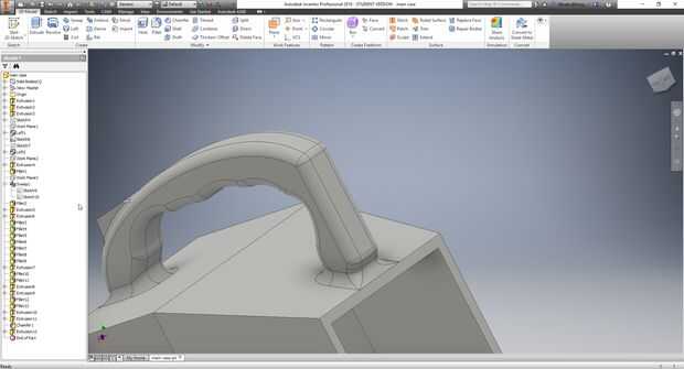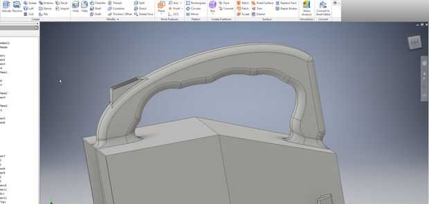 La parte donde el mango se une a la carcasa principal también fue fileteada para la tersura y también facilidad de impresión 3D. Por esta misma razón un piso fue cortado en la parte posterior de la manija para que mintiera sobre la cama de impresión.