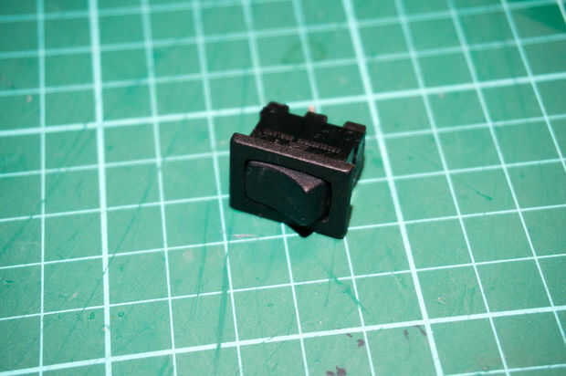 A continuación diseñé el corte del interruptor que pretende utilizar. Se trataba de un simple rectangular con el interruptor y se cortó el agujero en el mango a poca distancia de donde descansaría mi pulgar.