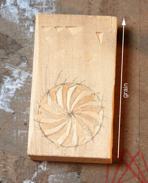 Siempre quiere tallar con el grano o a contrahilo. El grano puede también acumular y hacia abajo ligeramente, así que asegúrese de que está tallando con el grano en la dirección de abajo . El siguiente paso contiene cuadros de tallas en cada dirección para su referencia.