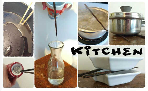- Cuando necesitan una almohadilla caliente rápida (que ir?), se reúnen unos palillos en una fila y colocar tus sartenes calientes y platos para hornear justo en ellos!