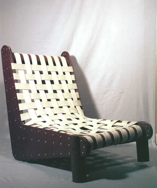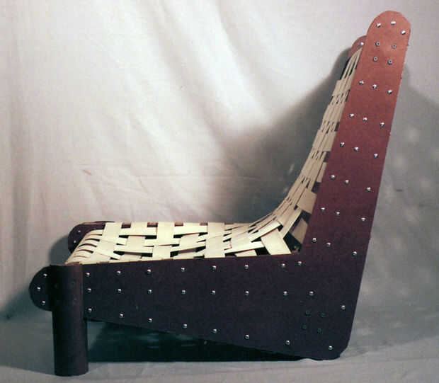 La silla tipo hamaca es un híbrido de masonite y cartulina, con los mismos principios de organización que arriba. Pernos de máquina tanto unir las capas y penetrar la cinta para evitar que se rasgue hacia fuera.