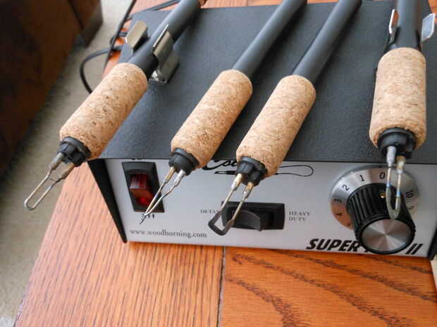 Todo me llevó a comprar un quemador de Colwood profesional. Tener la opción de regulación de calor fue muy útil para quemar diferentes tipos de madera (hablaremos sobre eso) y haciendo algunos matices cuidado. En lugar de cambiar las puntas, cambiar toda la "pluma" para nuevos efectos; la gran ventaja aquí es no tener que esperar hasta que la punta se haya enfriado el botón.
