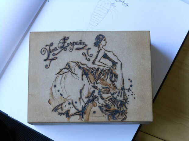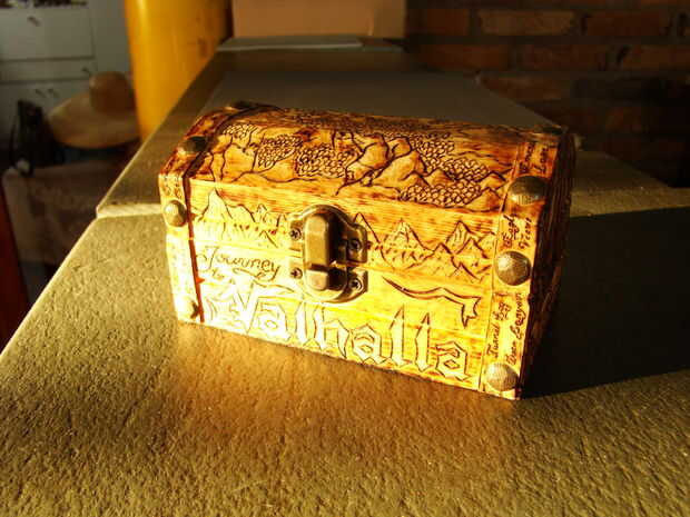 MDF: No la más hermosa, pero era el que tenía la mayoría del tiempo disponible. Cuando estaba trabajando en Brasil, cofres y cajas MDF eran la única opción en cada tienda. Es una madera dura, por lo que requiere más calor, pero tiene la ventaja de no preocuparse por el grano (ya que no tiene ninguna). Al hacer degradados, la mayoría de las superficies mostraría un agradable brillo dorado; sin embargo, algunas veces sólo sería gris y sin vida.