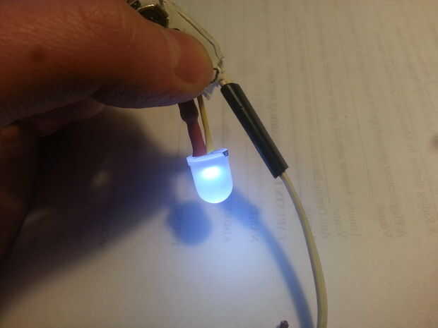 • En primer lugar hice una marca para indicar la polaridad. La pierna más corta suele ser el cátodo (-) (comprobarlo antes de ir más lejos)