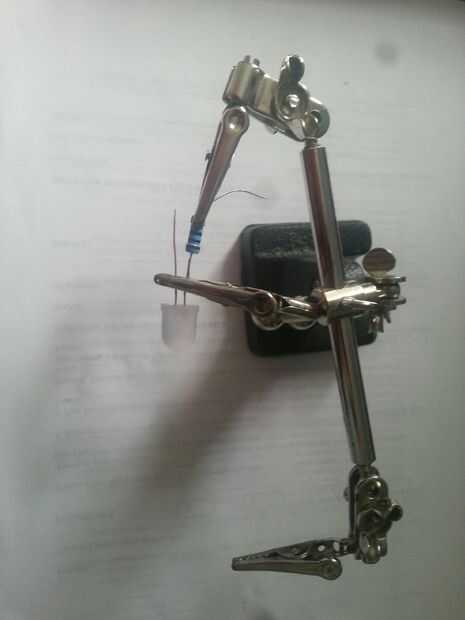 • Fije ambos componentes en una abrazadera o como lo he hecho: con pinzas