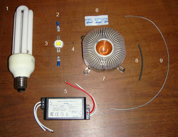 1. un viejo quemado lámpara fluorescente compacta, para la toma de la lámpara del LED (cualquiera sirve);