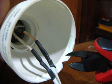 Hacer V un pequeño corte en la base de plástico para pasar los cables.