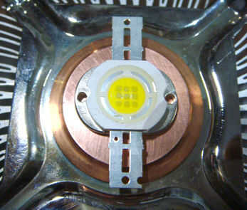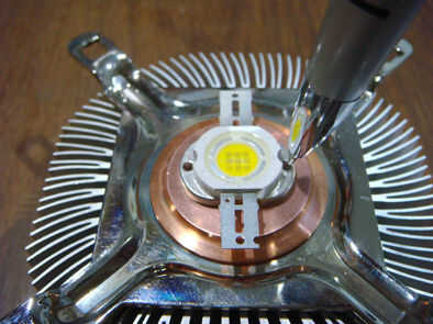 Antes de apretarlos, aplicar algunos pasta térmica por debajo de lo LED.