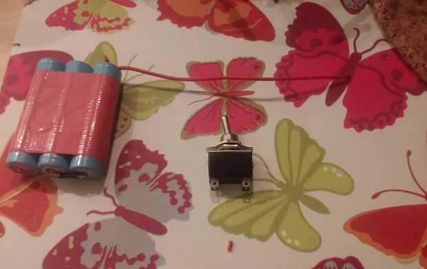 El controlador tiene un rectificador de puente completo en la entrada por lo que es polaridad inversa protegida. Ahora, ya que también tengo un ventilador en el disipador de calor, había soldado sus cables a la entrada del controlador. Soldado la salida del controlador LED cuidado era la polaridad correcta. Conecte las baterías tres 18650 en serie y añadir un interruptor entre la pila y el controlador.