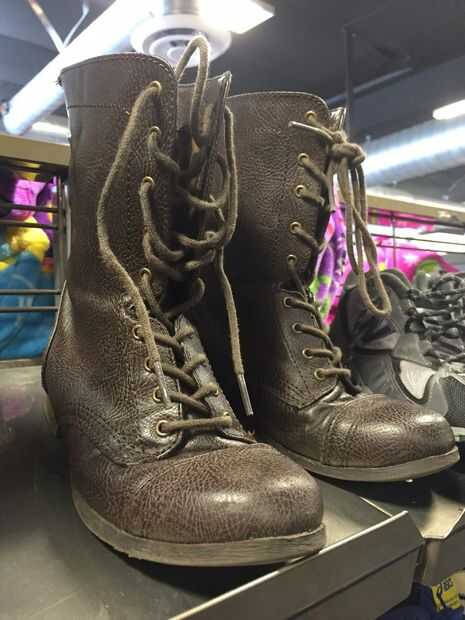 De acuerdo con las fotos que encontramos de Furiosa en el internet, sabíamos que era un viaje de buena voluntad en orden. Furiosa es necesario arranque y las correas... un montón de cinturones. Encontramos un gran par de botas por $6 y una mano llena de correas para la cintura. Mientras estábamos allí encontré un bolso barato que no sólo tenía las correas, pero que "cuero" para la parte posterior de la hebilla del cinturón de Furiosa. ¡ CUENTA!