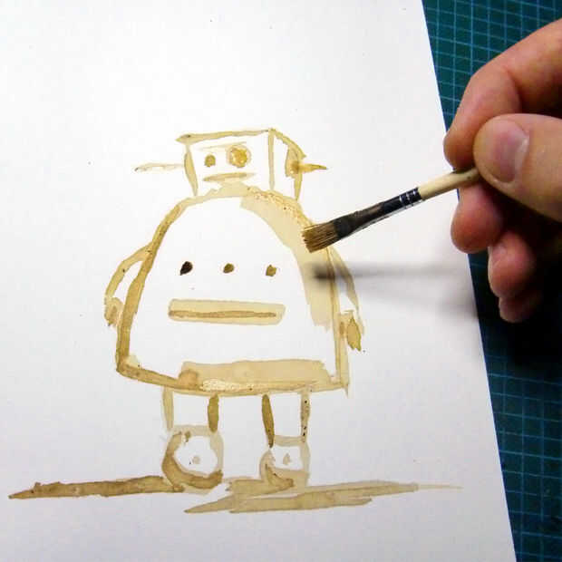 Artistas y artesanos han utilizado café y té como una forma de 'pintura' para las edades. Café regular puede ser cepillado en cartulina y se secará con una mirada se desvaneció, parda, con textura. Con aplicaciones repetidas pueden construir su imagen y crear profundidad.