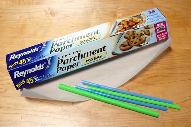 Hacer tu propio es fácil, todo lo que necesitas es papel pergamino y una plancha. Corte las pajillas a la longitud deseada, pero por lo menos 2" de largo para que pueda trabajar con seguridad con la paja y el hierro. Plegar el papel para hornear e Inserte el extremo de la pajilla en el valle del doblez, luego trabajar un hierro caliente sobre la paja de pergamino cubierto para derretir el plástico selle el extremo paja.