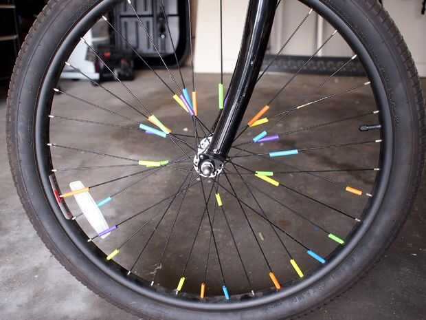Otro clásico de la infancia son adornos para tus radios de bicicleta. La paja puede hacer un colorido y divertido además de su paseo.