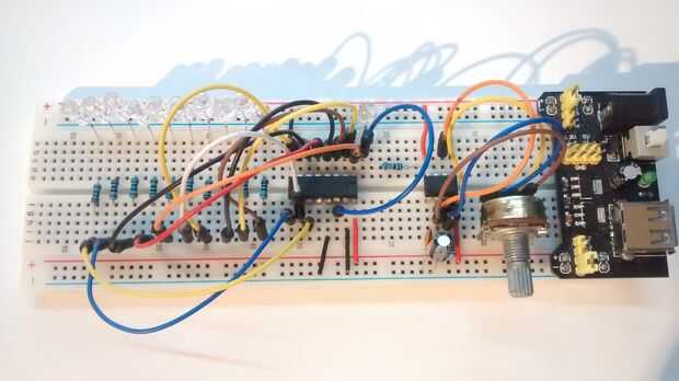 hice esto como un proyecto rápido usar mucho los LEDs tengo recientemente. Básicamente se conecta vía un 555 8 pin IC y permite ajustar el tiempo entre el tapajuntas cambiando los valores de resistencia o condensador. Proporciona un fresco buscando e