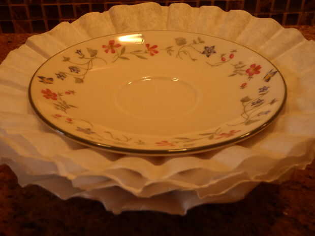 Proteger china separando sus buenos platos con un filtro de café entre cada plato.