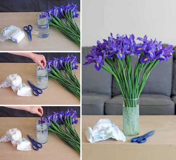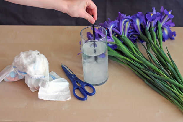 Espolvorear algunos poliacrilato de sodio en el agua con sus flores para hacer un gel. Sus flores serán recibiendo todo lo que dulce, suculenta de la humedad. Sólo sin el lío. O usted podría llevar un ramo de flores con un pañal, pero que clase de mina cualquier punto estaban tratando de hacer dando un especial somebody esas flores.