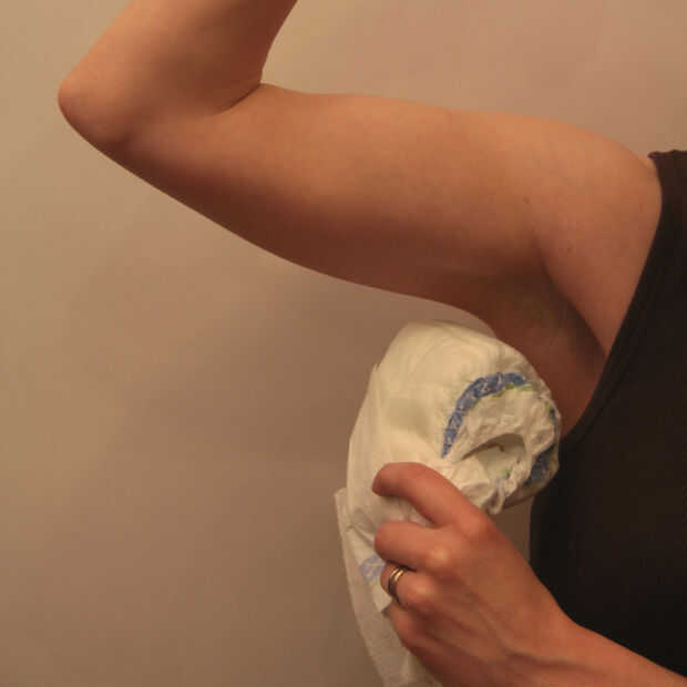 Si tienes un pañal contigo, tienes una oportunidad de mejorar cualquier transpiración imprevista. La capacidad de absorción del poliacrilato de sodio se chupar hasta lo que tus glándulas sudoríparas han decidido secretan. Algunos pañales son aromáticas, por lo que incluso dejan sus olor fresco como el culito de un bebé los hoyos.