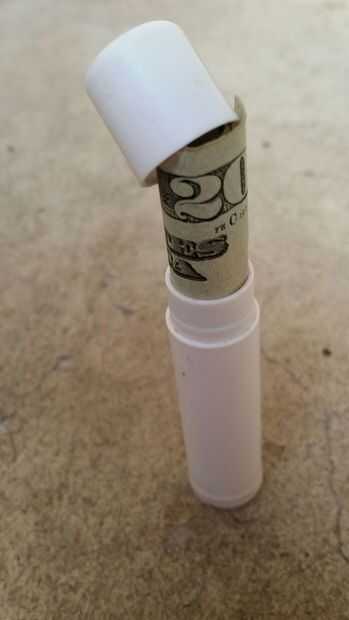 Si viajas puede a menudo convertido en el blanco de los carteristas o ladrones, pero no puedo pensar en ladrones muchos que querrían bálsamo para los labios. Así que trate de esto, tire el labio bálsamo fuera de su envase y poner su dinero en él. Usted puede hacer esto tirando duro en la parte en la parte inferior (que tuerza) debe salir. Luego usé un cuchillo para extraer el bálsamo para los labios. Vuelva a colocar la parte inferior dándole un empujón. Entonces usted puede poner su dinero u otros objetos de valor pequeño en él.