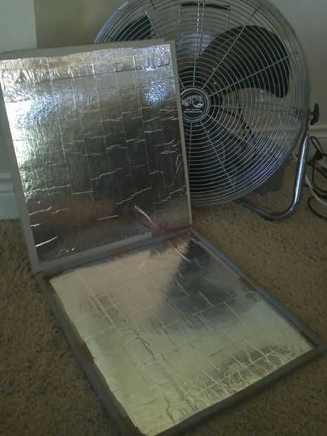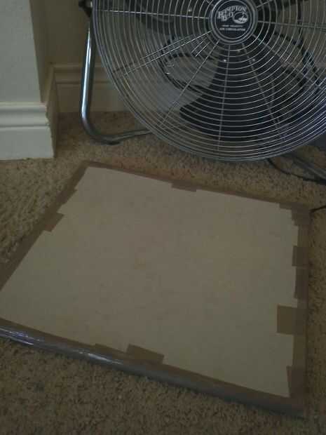 Puede que necesite añadir un pequeño trozo de la espuma en el centro para ayudar a mantener los dos lados separados dependiendo de la rigidez de su cartón y el peso de su perro. El más pesado el perro, más probable tendrá esto como después de un mes o tres te darás cuenta cuando el perro se levanta, el ventilador no apaga rápidamente o nada más, haciendo necesario el espaciador. Se trata de una solución de construcción post fácil para hacer, como solo es necesario cortar una pequeña cinta para recuperar el acceso a las entrañas de la estera.