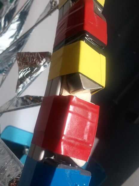 Para hacer las láminas en la cinta de aluminio de rueda lugar en las radios. Deje un pequeño espacio en la parte superior e inferior. Ver la foto y lo copiamos.
