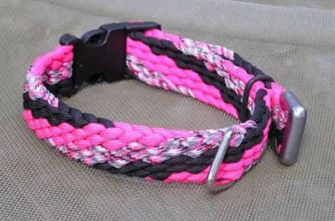 La foto color del collar es el de medicbowling y el que me llamó la atención. Lamentablemente, no tengo tal colorido paracord práctico, pero utilizo tres colores por lo que se veía el movimiento de los colores en el patrón.