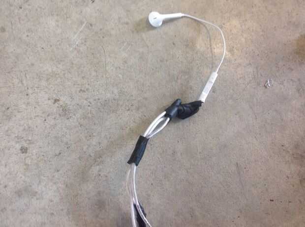 Cortar las almohadillas entre el mic y la división y luego tira de los cables. A continuación, corte el cable de 36 pies a 12 pies secciones despojarlos