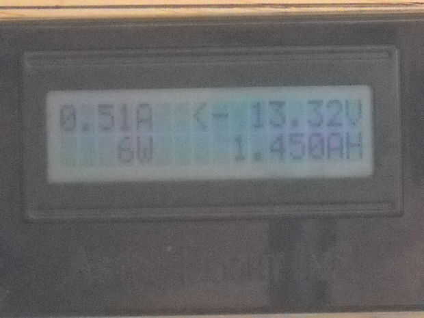 WattsUp pasa el jugo para el controlador de carga después de medirlo y luego a la batería para la carga.