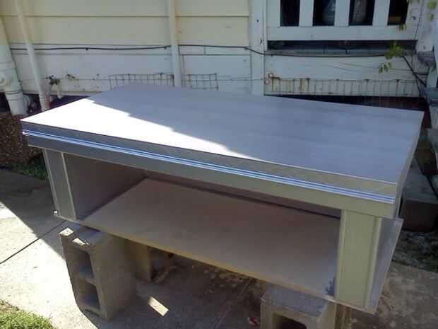 hice esta lavadora/secadora plataforma con dos 2 x 12 (cortado en 2-58", 5-25"), 2 hojas de 3/4" madera contrachapada (corte a 2-58"x 28"). La madera fue atornillada como una forma de pared; luego la madera atornillado a la parte