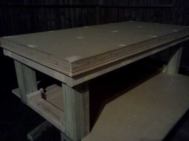 hice esta lavadora/secadora plataforma con dos 2 x 12 (cortado en 2-58", 5-25"), 2 hojas de 3/4" madera contrachapada (corte a 2-58"x 28"). La madera fue atornillada como una forma de pared; luego la madera atornillado a la parte