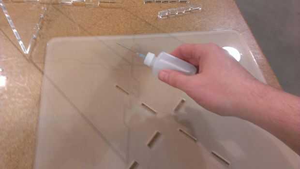 Para agregar fuerza / aspecto, solía Weldon-3 para pegar láminas de plexiglás para hacer un fondo de 1/2" de espesor de 1/4".  El proyecto está diseñado para que cabe en 3 cajas móviles de pequeño u-haul.