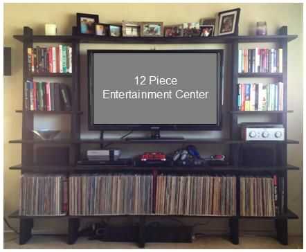 El centro de ocio de 12 piezas puede mantener las cosas organizadas y fuera del camino mientras todavía fácilmente accesible. Toma un poco de una inversión de tiempo y dinero pero sirve un gran propósito. Algunos de los estantes se pueden quitar dándole a su espacio una sensación más alta pero que encuentra a menos de un pie de la pared. No lo he probado cuánto peso puede sostener cada estante, pero fuerza y color natural dependerá más de los materiales que usted elija para su proyecto.