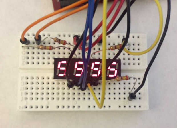 Escrito el canal digital que el segmento está conectado a la baja enciende ese segmento. Los canales de "ánodo" determinan qué dígito aparece. Canal de sólo un ánodo es alta a la vez para mostrar el dígito correspondiente. Para mostrar el primer dígito, se escribiría Anode1 alta y baja Anodes2-4.