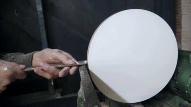 Comencé este proyecto por dos discos de 12 pulgadas de madera contrachapada en mi sierra. No tengo ninguna melamina del espesor correcto usé madera contrachapada de 1/2 pulgada y la otra de melamina de 1/4 pulgada frente a la madera contrachapada y pegados juntos para hacer el disco, había jodido mi placa de cara a él y Centre en el router antes de pegarse el disco autas-adhesivo en.