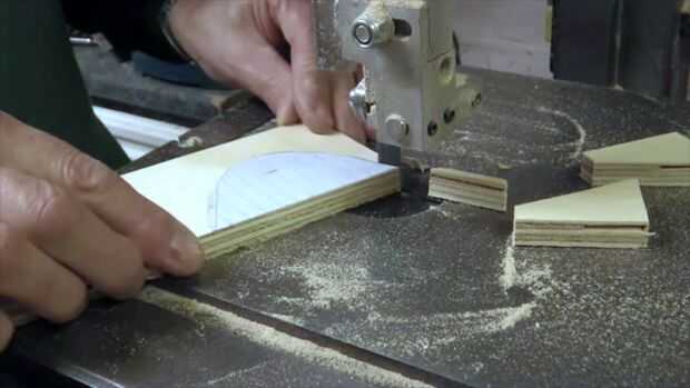 pegar la plantilla sobre la madera contrachapada y recorto en la Sierra de cinta y lijar hasta tamaño entonces marcada el resto y cortar sobre el tamaño a cortar sobre la mesa de fresadora.