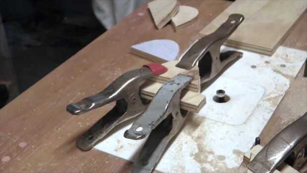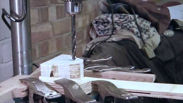Graba los soportes para taladrar agujeros idénticos, los soportes inferiores se pegan pero la parte superior los soportes sólo son grabados juntos sin pegar una vez perforado entonces separaba, dos de los principales soportes son avellanados excepto una tuerca T entonces pegado junto y afianzado con abrazadera hasta secan.