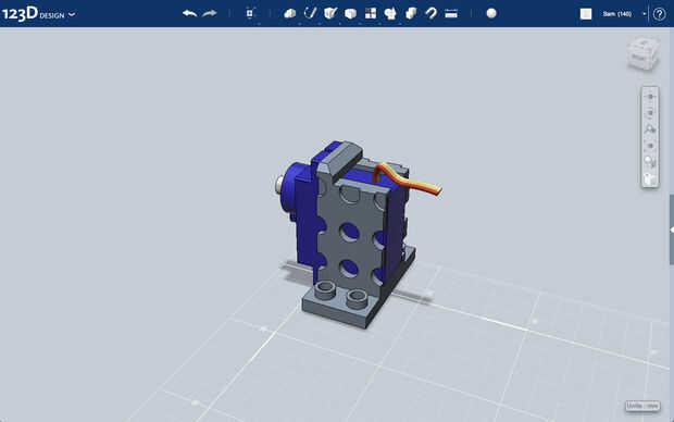 Adjunto se encuentra el archivo STL, descargar a continuación. Este modelo 3D se puede ver en mi página del proyecto 123D. El montaje del Servo está todavía en etapa de prototipos, cualquier comentario y sugerencia serán muy apreciadas.