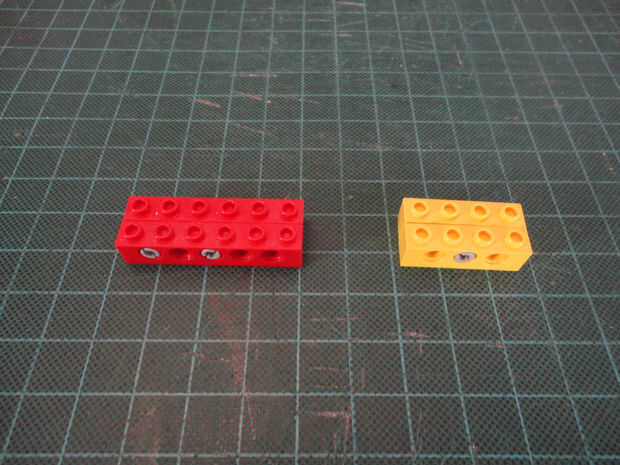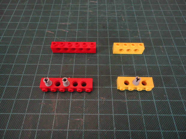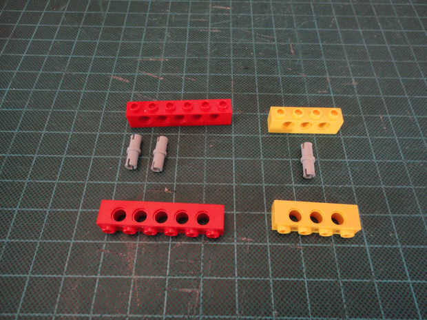 Foto 1, 2, 3 Dos de 1 x 6 ladrillos Technic (#3894) y dos 1 x 4 técnica (#3701), de ladrillo y tres conector Peg (#3673)