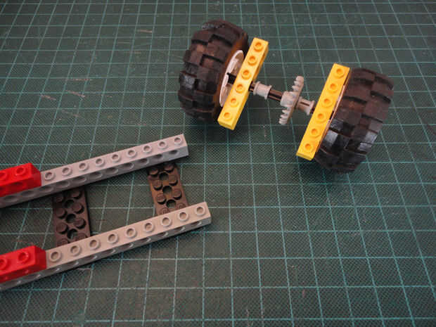 Foto 15, 16, 17, 18 2 mm adaptador para ruedas de Lego (Pololu parte #1001) (o eje de Peg/Cross de conector modificado (#6562) para encajar el eje del motor del juguete DC.)