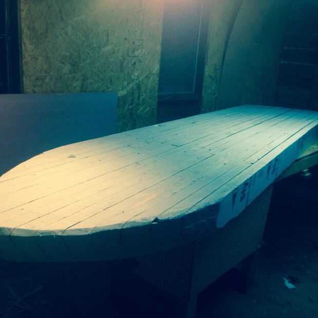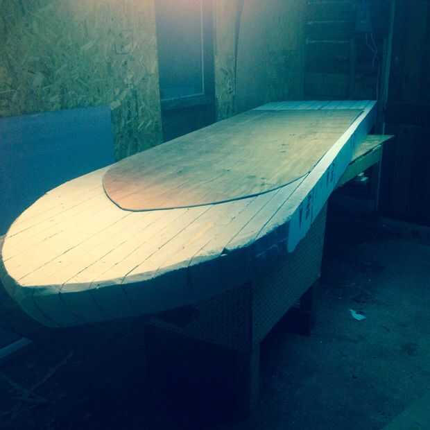 Luego tomar la luan de pulgadas de trimestre que forma y arena y mástil barnizado con dos manos y el pegamento (oh que pegamento) a la parte superior.