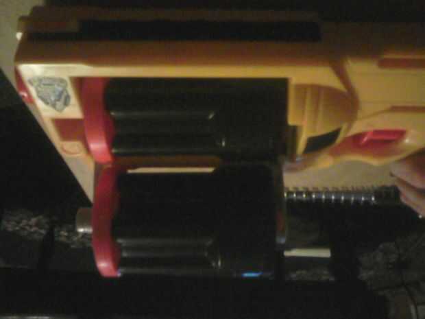 Mientras mantiene pulsado el botón puede quitar la pistola y los barriles se moverá a través, de uno en uno hacia fuera, sin embargo tienden a no deslice en todo que el camino y usted tendrá que lo agitan un poco para poner en marcha.