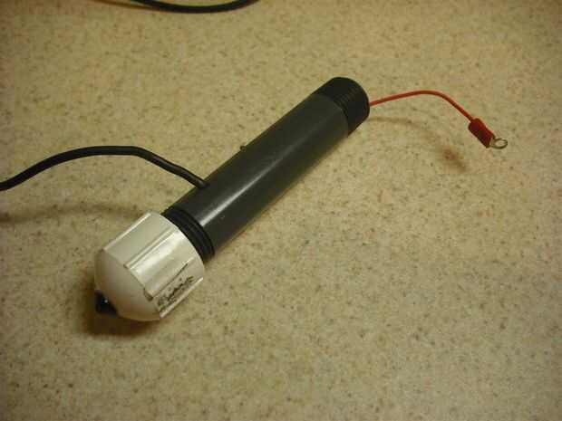 Deslice el cable con el anillo terminal a través de la entrerrosca de la pipa así que fuera el otro extremo. Y el resto del alambre en el tubo y tornillo en la tapa que sujeta el Panel LED.