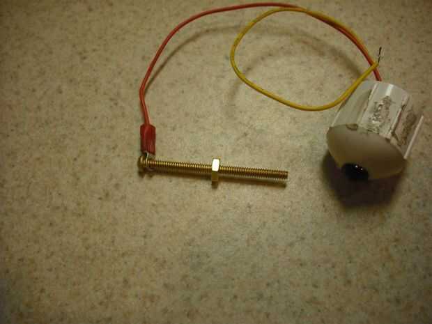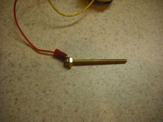 Ahora toma el tornillo de máquina de cobre de 2" y poner a través del anillo terminal. A continuación poner en una de las tuercas y girar todo el abajo al terminal de anillo.