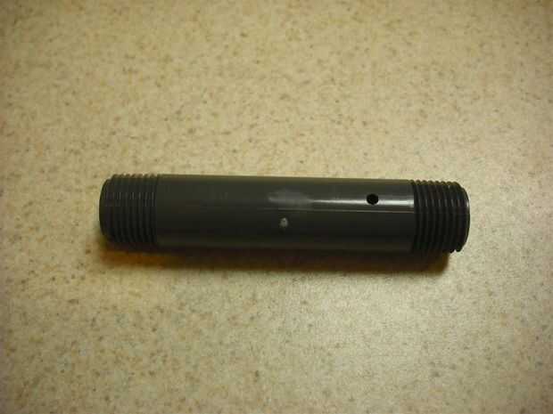 a continuación perfore un orificio de 1/8" en el lado del niple de tubería de PVC de 4"