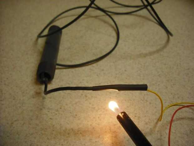 Tubería del encogimiento del Deslice el calor sobre la conexión soldada. Usando una pistola de aire caliente o caliente más ligero el tubo termocontraíble hasta que se contrae alrededor de la conexión soldada.